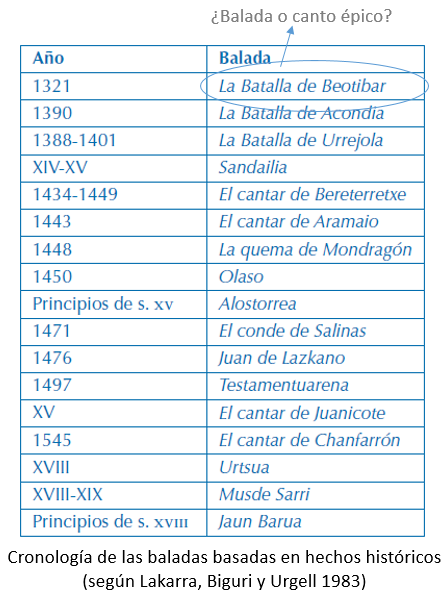 | Fragmento aparecido en el Compendio Historial de las Crónicas de Estaban de Garibai (1571). Se refiere a la batalla de 1321 entre guipuzcoanos y navarros. Según Mitxelena (1969), el texto es del s. XVI, no del XIV. | ||