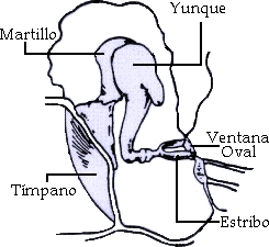 | 1. Promontorio 2. Ap. larga del yunque 3. Tendón del músculo del.estribo 4. Pirámide 5. Martillo adherido al promontorio 6. Nicho de ventana redonda 7. Zona anterior de caja 8. Anillo fibroso de la membrana 9. M. fláccida retraida hacia anterior |