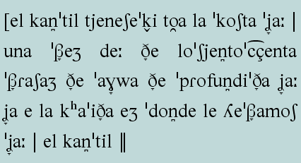 Aparece a continuación una propuesta de transcripción fonética de la primera parte del Segundo Texto: