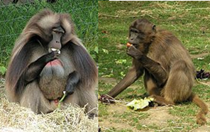 Bergman (2013) considera al movimiento característico de los labios de los gelada (una especie de rápido relamido), que acompaña muchos de sus comportamientos asociativos, como un precursor del lenguaje humano. También proporciona un ejemplo de vídeo de la vocalización de un gelada adulto.