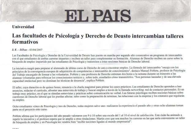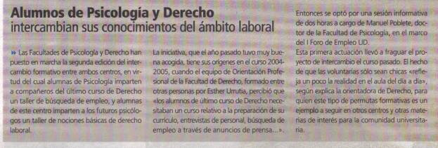 búsqueda de trabajo, destinado a estudiantes de quinto curso de Derecho. El
